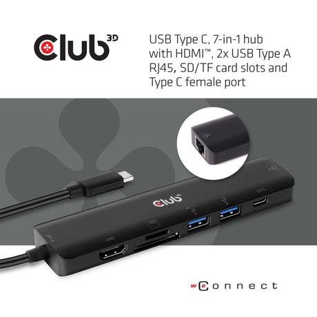 Club3d Usb-7-In1-Hub Usb-C > Hdmi/2xusb/Usb-C/Rj45/Sd/Msd Retail