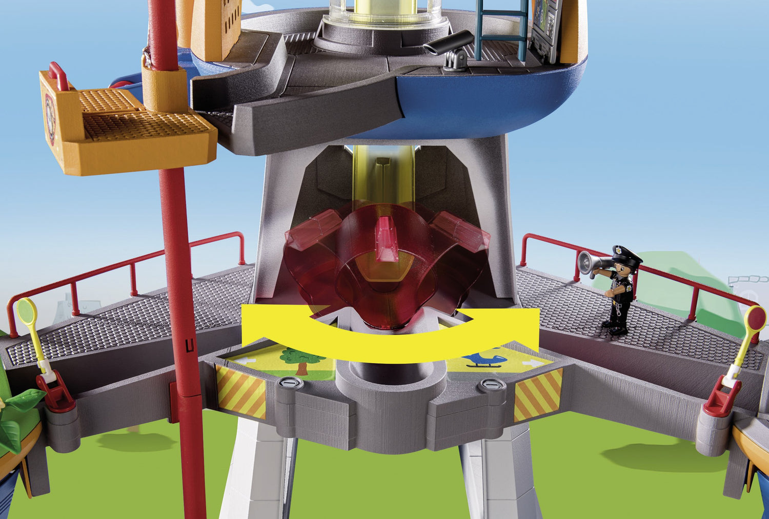 - Contenido del paquete: Figures: 1 Ducklas, 1 Freddy Fire, 1 Polly Police, 1 Mikey Medic; Animals: 1 bird; Accessories: 1 headquarters with light and sound module and freefall slide, lift and playground, 1 police helicopter with searchlights, 1 tree with swing, 1 desk, 1 chair, 1 monitor, 1 crate, 1 hiding stone, 6 plants, 1 sign, 1 fire extinguisher, 1 megaphone, 1 keyboard, 1 first aid kit, 1 police ladle, 1 play boat, 1 frisbee
