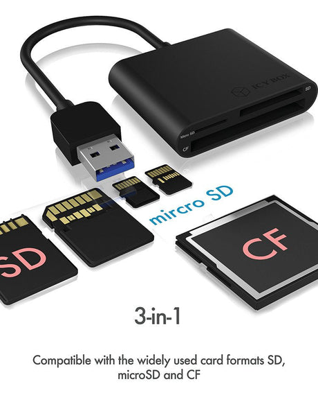Lector De Tarjetas Externo Icy Box Ib-Cr301-U3 Negro Usb 3.2 Gen 1 (3.1 Gen 1)
