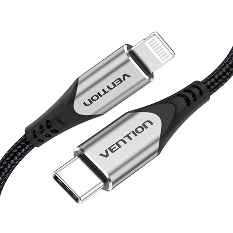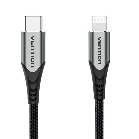 Cable Usb 2.0 Tipo-C Lightning Vention Tachh Usb Tipo-C Macho Lightning Macho 2m Gris Y Negro