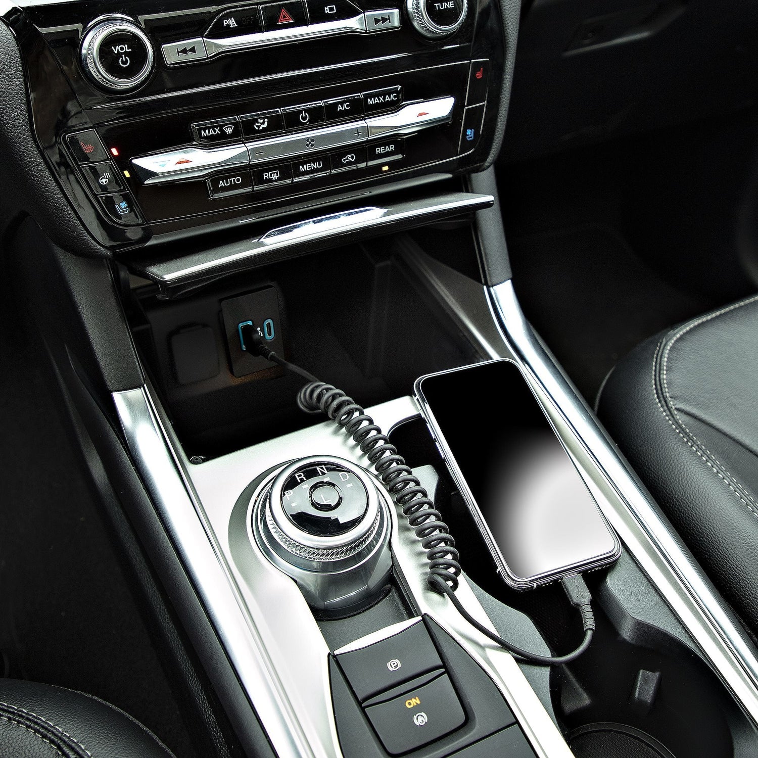 • CABLE USB-C A LIGHTNING: El cable rizado se estira hasta 50cm y se contrae hasta 32cm, lo que evita que se enrede y estorbe. La cubierta de TPE hace que sea fácil de enrollar y guardar en la consola del vehículo o en la guantera