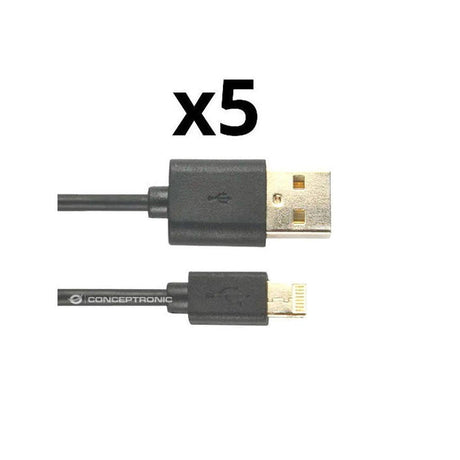 Kit 5 Unidades Cable Lighting Nortess Iphone 5 6/7/8/ X Ipad 2 Metros Color Negro