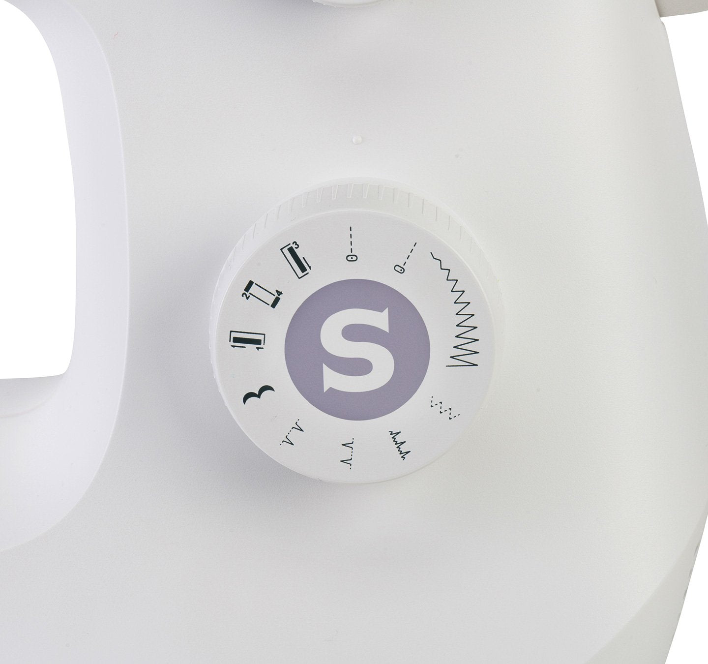 SINGER M2405. Color del producto: Blanco, Tipo: Máquina de coser semiautomática, Funciones de la máquina de coser: Costura. Tipo de fuente de alimentación: Eléctrico. Accesorios para máquinas de coser incluidos: Prensatelas para coser botones