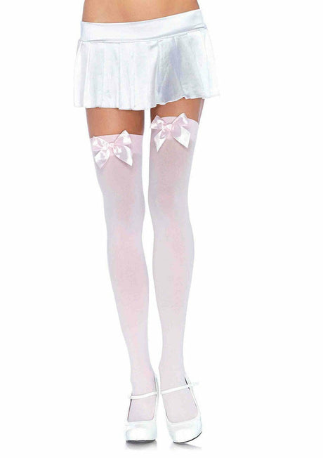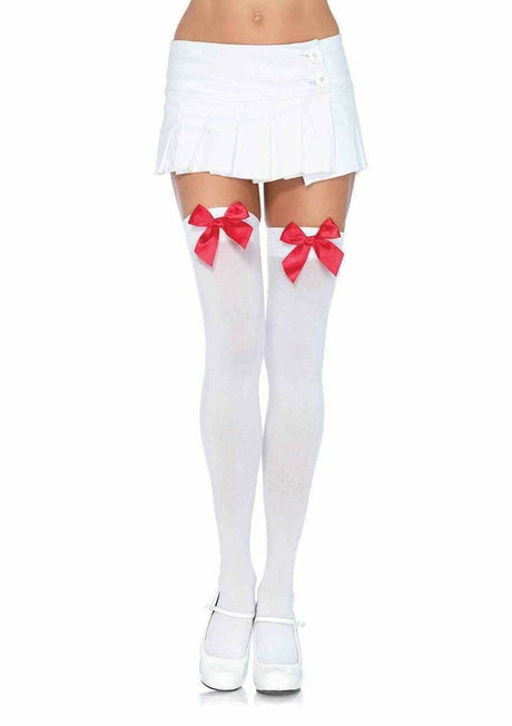 Leg Avenue - Medias Nylon Blanco Y Lazo Rojo
