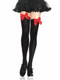 Leg Avenue - Medias Altas Negras Con Lacito Rojo Talla Unica