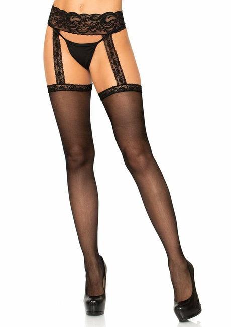 Leg Avenue - Outlet - Medias Negras Con Liguero De Encaje