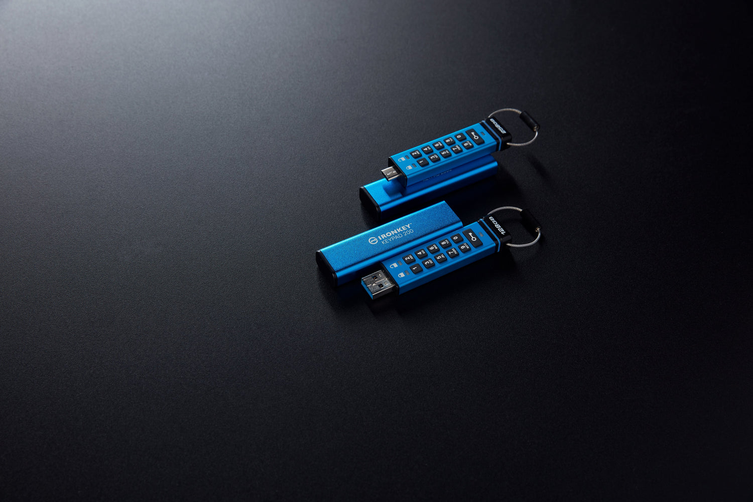 La serie Kingston IronKey™ Keypad 200 consta de unidades USB Tipo A y Tipo C® cifradas por hardware e independientes de sistemas operativos, con un teclado alfanumérico que facilita la inserción del PIN de acceso.