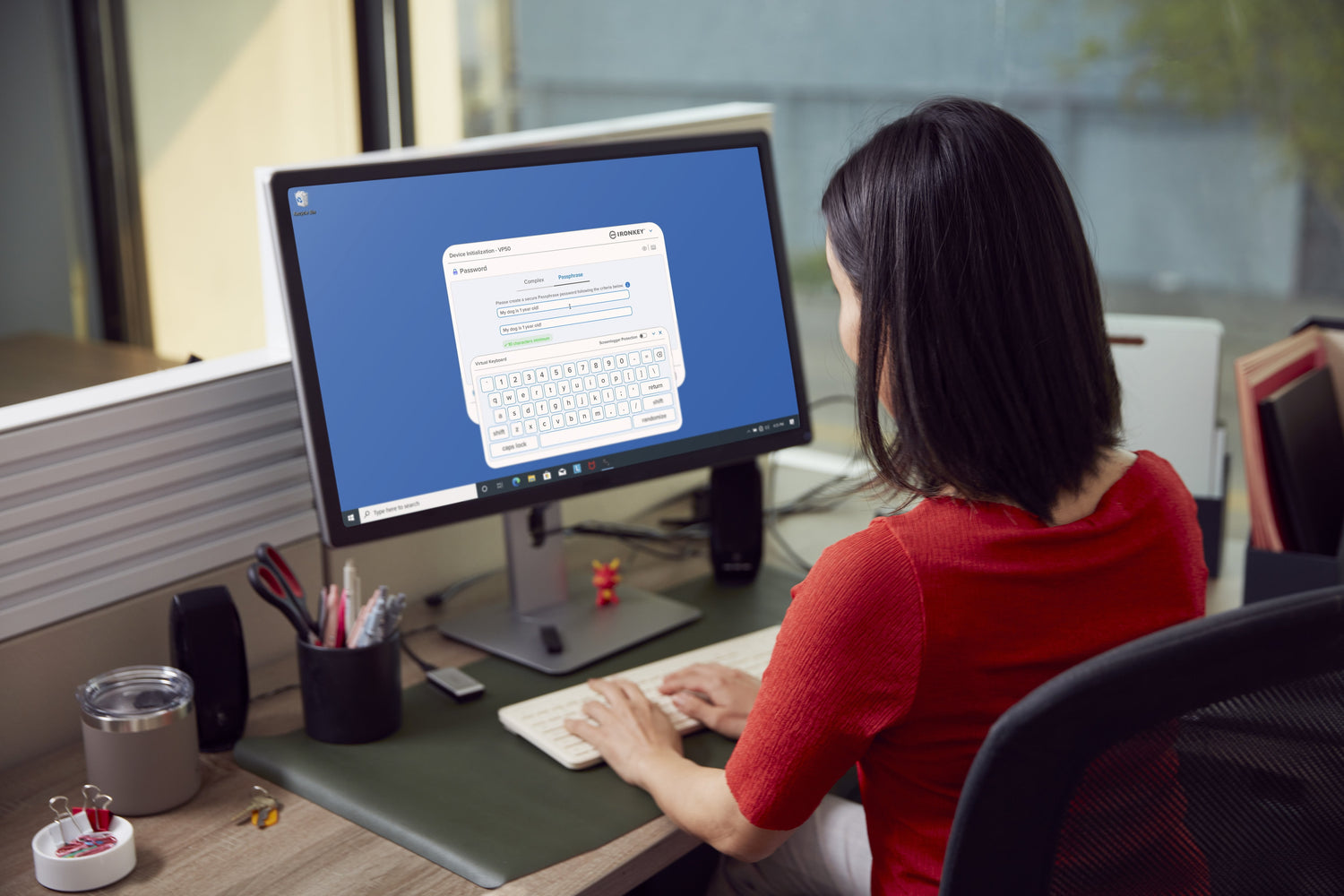 Reduce la frustración y los intentos fallidos de inicio de sesión habilitando el botón con el símbolo del ojo para mostrar la contraseña que has escrito. Utiliza un teclado virtual para proteger la entrada de la contraseña contra grabadores de pulsaciones y de pantallas.