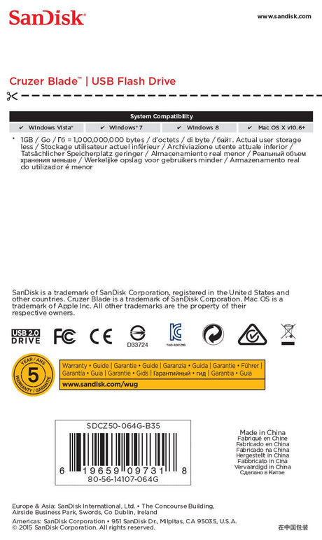 Pendrive Sandisk Cruzer Blade 64gb Usb 2.0 Azul Elctrico