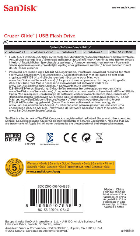Pendrive Sandisk 64gb Cruzer Glide,Usb 2.0