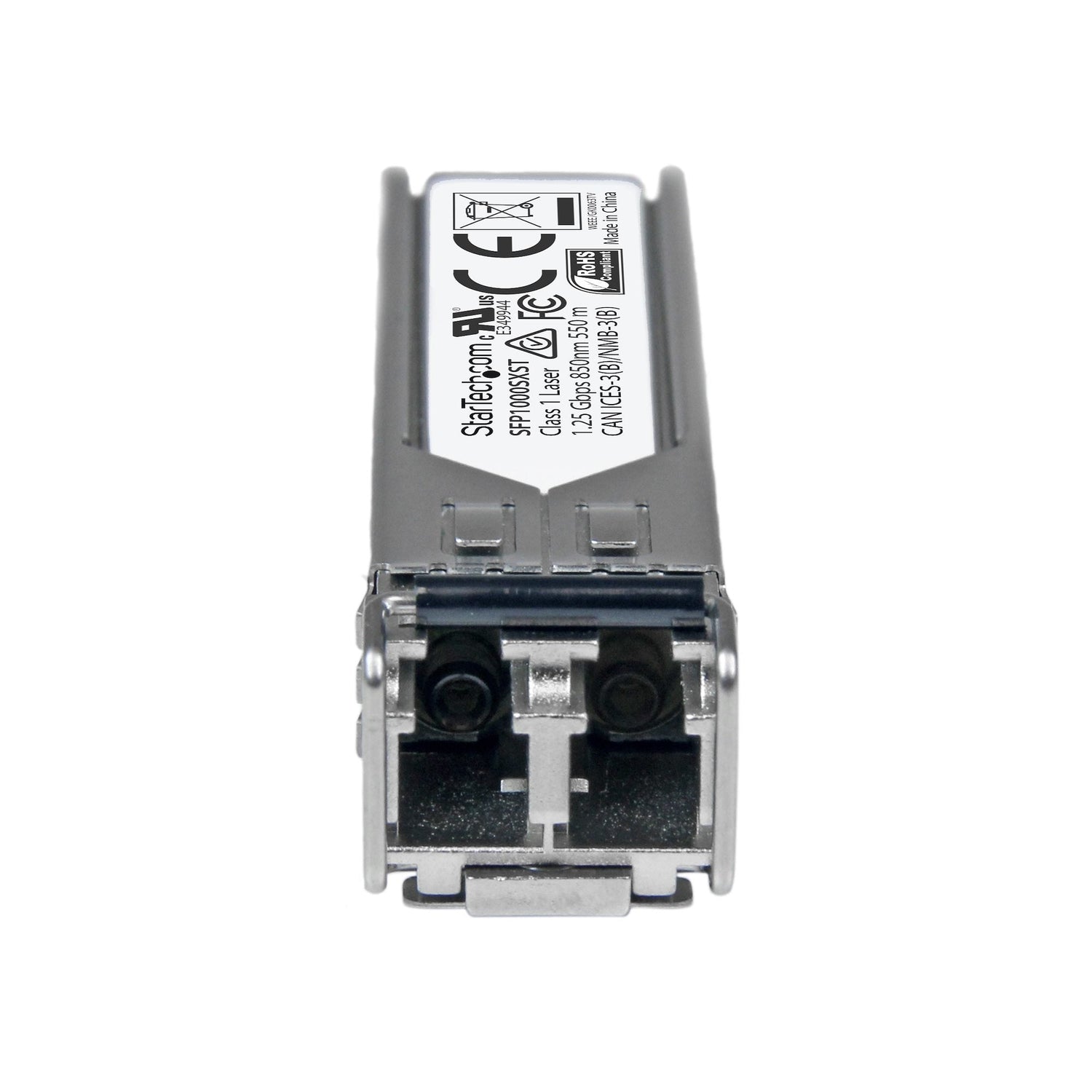 StarTech.com Módulo Transceptor SFP no Codificado MSA - 1000BASE-SX - Transceptor Óptico de Fibra Multimodo (MMF) de 1GbE - SFP Ethernet Gigabit de 1Gb - LC - 550m - 850nm - DDM. Tipo de transceptor SFP: Fibra óptica, Rango máximo de transferencia de datos: 1250 Mbit/s, Tipo de interfaz: SFP. Color del producto: Plata, Material de la carcasa: Aluminio. Consumo energético: 1 W. Certificados de conformidad: RoHS, Certificación: CE, FCC, UR. Ancho: 13,9 mm, Profundidad: 58,4 mm, Altura: 12,6 mm