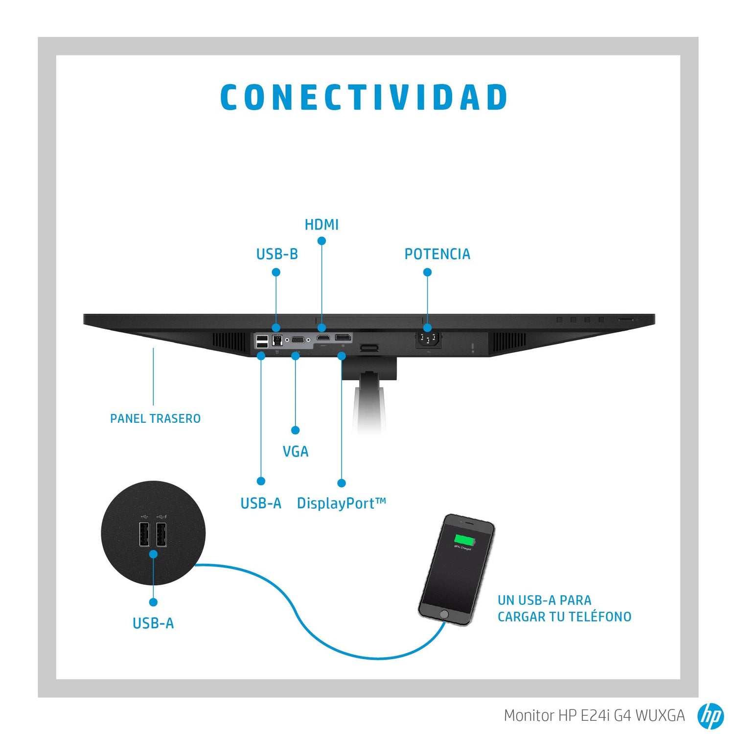 Monitor Hp E24i G4,Ips 24",1920x1080,Regulable En Altura,3 Años