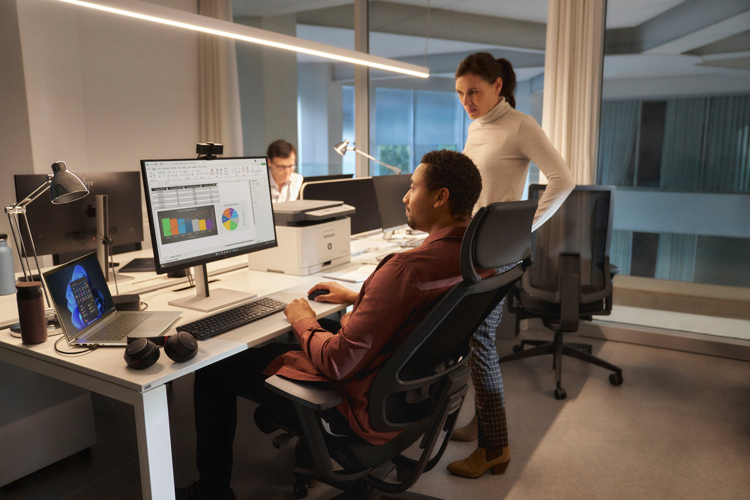 Trabaja desde cualquier lugar sin que esto afecte al rendimiento gracias a Windows 11 y a la tecnología de colaboración, seguridad y conectividad de HP. Resume y reescribe contenido, obtén recomendaciones de contenido relevantes y mantente organizado con Microsoft Copilot.