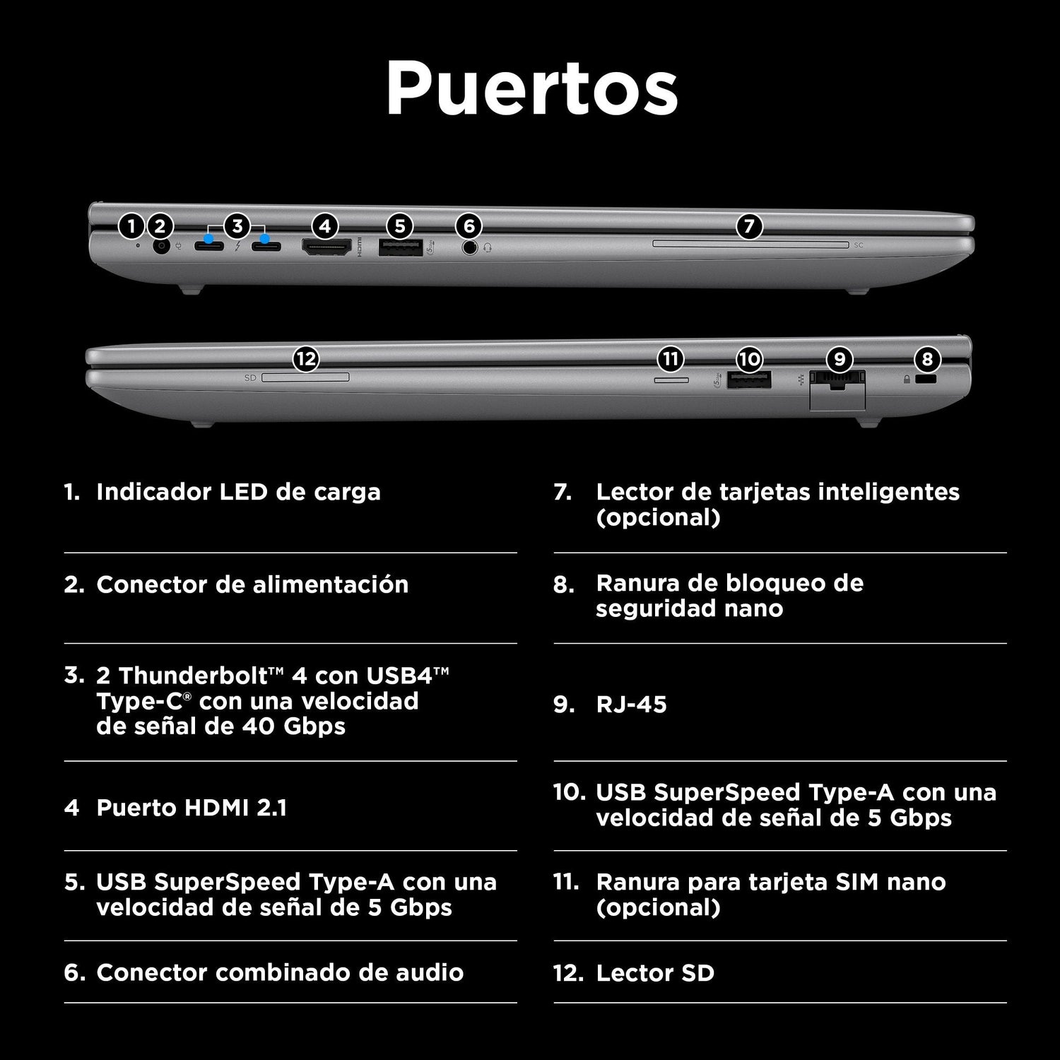 - Intel Core™ Ultra 7 155H (hasta 4,8 GHz con tecnología Intel Turbo Boost, 24 MB de caché L3, 16 núcleos, 22 subprocesos)