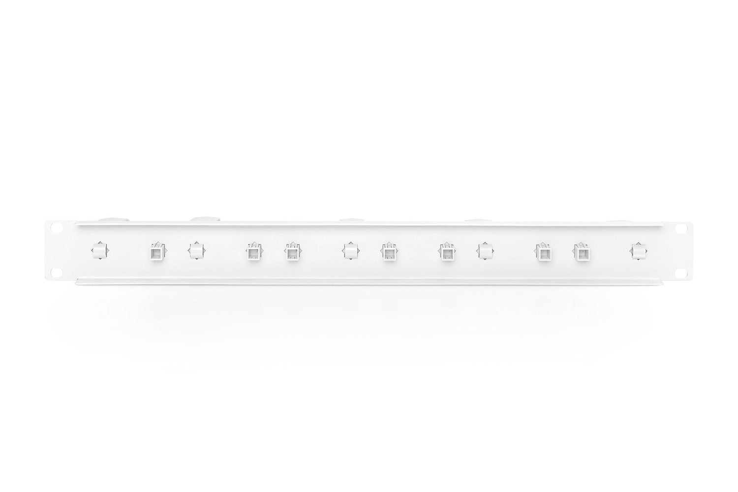 Los paneles de distribución de cable están fijados a las guías perfiladas de 482,6 mm (19"). Cinco soportes guía de cable giratorios posibilitan la distribución sencilla y horizontal de los cables de conexión. Además pueden sustituirse o colocarse nuevamente. El panel de distribución ofrece además siete puntos de montaje, cubiertos con tapones ciegos. Está garantizada una distribución óptima de su armario de red o servidor de 482,6 mm (19").