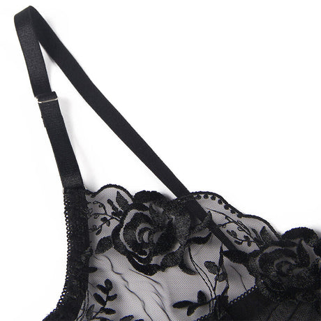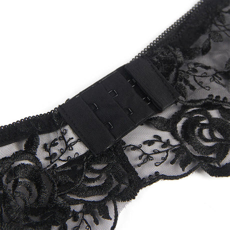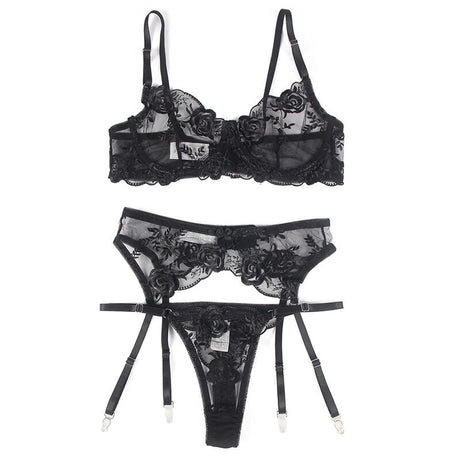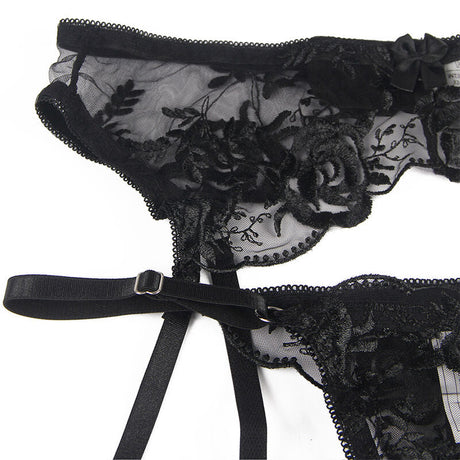Subblime - Set De 3 Piezas Sujetador + Tanga + Liga Estampado Floral Negro S/M