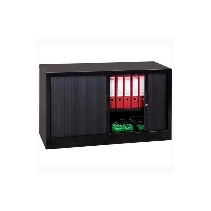 Armario Metálico Dos Puertas Persiana Correderas 100x45x100 Cm (Ancho X Fondo X Alto) Incluye 2 Baldas Acabado En Antracita (Montado)