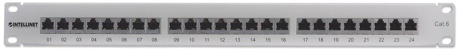 Intellinet 720014. Estándares de red: IEEE 802.3, IEEE 802.3ab, IEEE 802.3u, Tipo de interfaz ethernet: Ethernet rápido, Gigabit Ethernet, Conector: RJ-45. Color del producto: Gris, Montaje: Montaje en bastidor, Capacidad del rack: 1U. Certificados de conformidad: RoHS, Certificación: CE, UL. Ancho: 44 mm, Altura: 110 mm, Profundidad: 482 mm