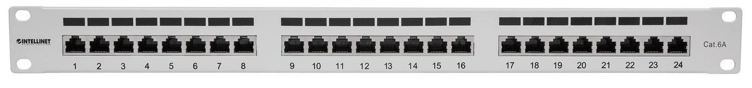 Intellinet 720854. Estándares de red: IEEE 802.3, IEEE 802.3ab, IEEE 802.3u, Tipo de interfaz ethernet: Gigabit Ethernet, Tipos de cable soportados: Cat6a. Color del producto: Gris, Montaje: Montaje en bastidor, Capacidad del rack: 1U. Certificados de conformidad: RoHS, Certificación: UL, CE. Ancho: 482 mm, Altura: 44,3 mm, Profundidad: 98,5 mm