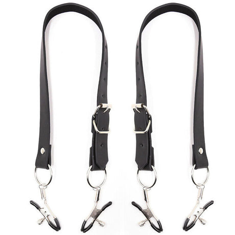 Mordaza Cuero Y Pinzas Para Pezones Ajustable
