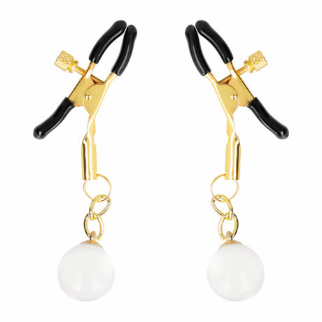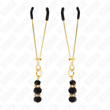 Kink - Pinzas Para Pezones Dorada Fina Con Triple Bola De Vidrio Negro 7 Cm