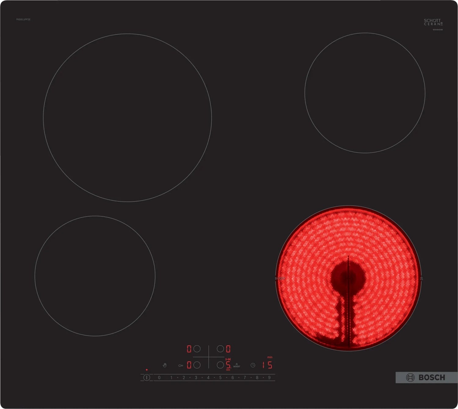 Bosch Serie 6 PKE611FP2E, Negro, Integrado, 60 cm, Cerámico, Vidrio y cerámica, 4 zona(s)