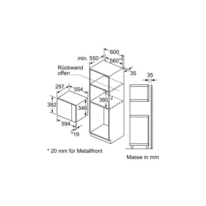 Microondas Integrable Bosch Bfl520ms0 Capacidad 20l Color Cristal Negro/Inox Sin Marco