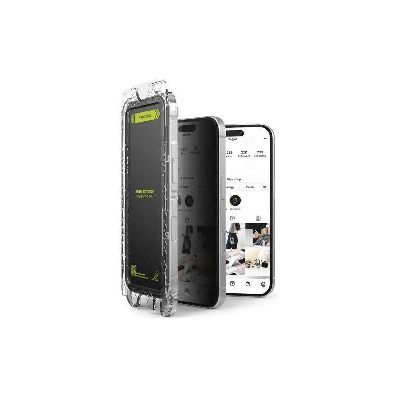 Ringke Iphone 15/ 16 Screen Protector Privacy Premium Easy Slide Tempered Glass 9h With Installation Jig (2pcs) Transparent