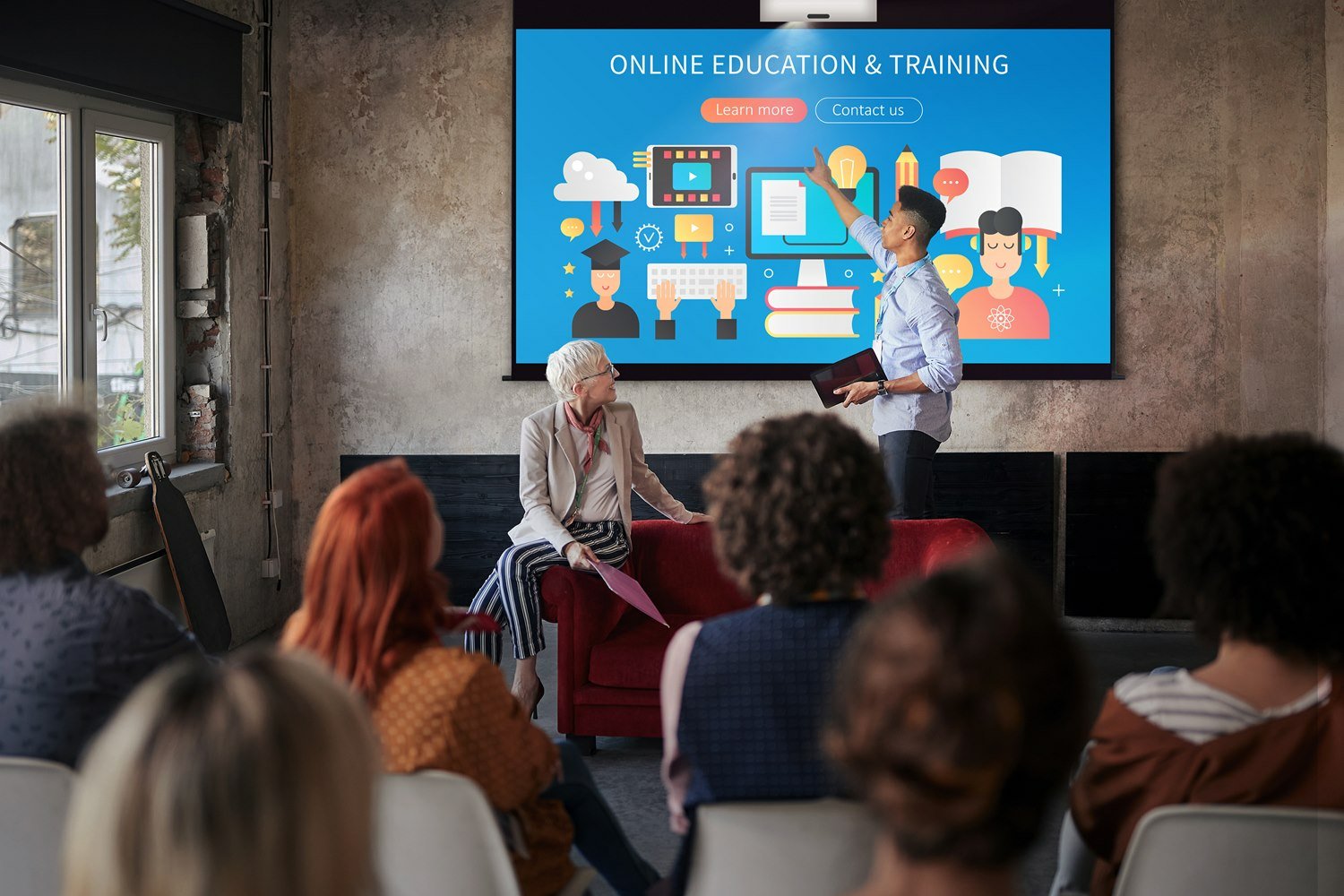 Diseñado para salas de conferencias, salas de juntas y otros espacios corporativos, el ZH430UST cuenta con una lente de alcance ultra corto, lo que significa que puede proyectar una imagen de 100" a menos de 0,5 m de distancia, evitando sombras que se proyectan a través de la pantalla desde el presentador(es). Para mayor comodidad, incluye una conexión RS232 para supervisión y control y un altavoz integrado.