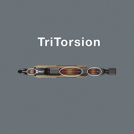 Un Bit-Check robusto de Wera. Los Bit-Check permiten una vista general rápida sobre la herramienta que se tiene. Las puntas que no se necesitan, simplemente se vuelven a guardar en el juego y así no se pierden. El transporte es fácil, por ejemplo, en el bolsillo de la camisa. La tecnología "Impaktor" proporciona vidas útiles sobreproporcionales de la herramienta, incluso en el caso de cargas extremamente altas. La resistencia friccional elevada que produce el recubrimiento con una capa rugosa de partículas de diamante en el extremo de la punta, evita que el útil se salga del tornillo por deslizamiento. El porta-puntas es de tipo Impaktor y logra amortiguar picos de impulso extremos. Se da un efecto torsional especial gracias al muelle torsional doble. Con ayuda de su imán anular, el porta-puntas Impaktor adicionalmente sostiene tornillos largos y pesados de forma supersegura lo cual también supone la solución ideal para trabajos por encima de la cabeza. Especialmente adecuadas para la aplicación con máquinas destornilladoras de impacto/de golpe habituales en el comercio. Es posible desplazar el imán hacia atrás, quedando "desconectado" de esta forma.