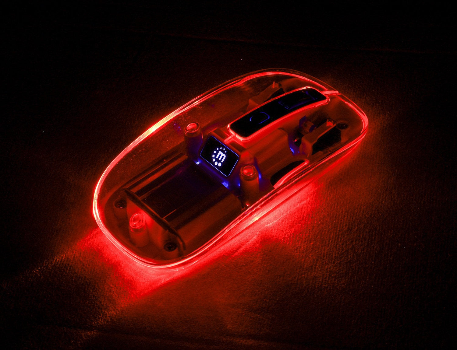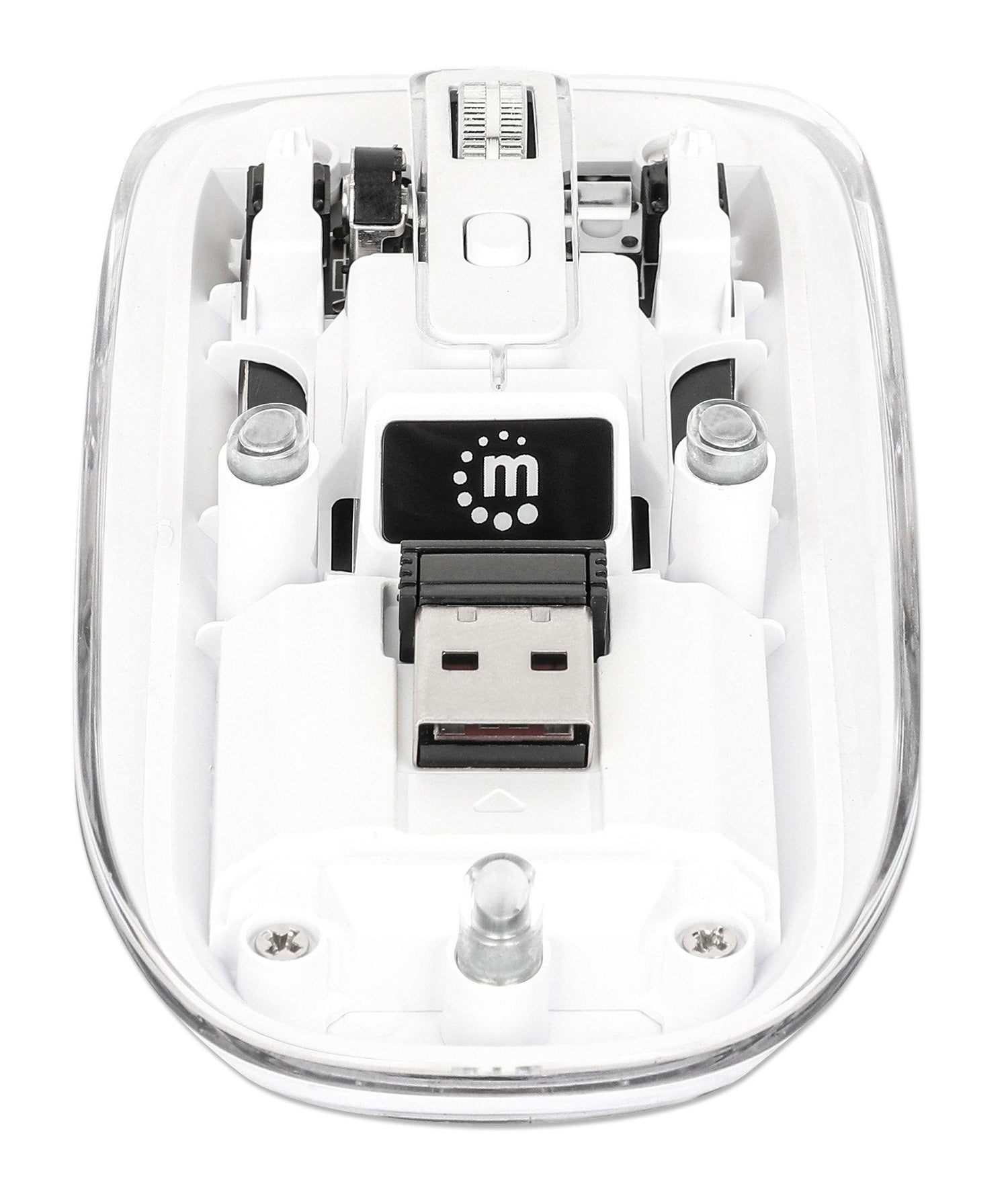 Manhattan 190275. Factor de forma: Ambidextro. Tecnología de detección de movimientos: Óptico, Interfaz del dispositivo: RF inalámbrico, Resolución de movimiento: 1600 DPI, Tipo de botones: Botones presionados, Cantidad de botones: 4, Tipo de desplazamiento: Rueda. Iluminación de color: Multi. Fuente de energía: Baterías. Color del producto: Transparente, Blanco