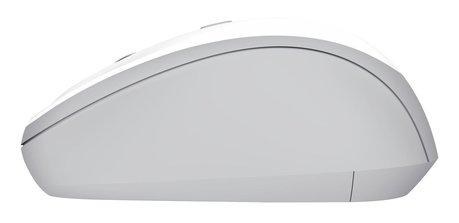 Trust Yvi+. Factor de forma: Ambidextro. Tecnología de detección de movimientos: Óptico, Interfaz del dispositivo: RF Wireless + Bluetooth, Resolución de movimiento: 1600 DPI, Tipo de botones: Botones presionados, Cantidad de botones: 3, Tipo de desplazamiento: Rueda. Fuente de energía: Baterías. Color del producto: Blanco