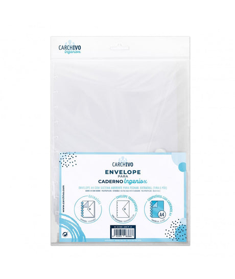 Carchivo Sobre Ingeniox A4 Extraíble Cierre C/Velcro Polipropileno Transparente