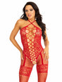 Leg Avenue - Bodystocking Cuello Halter Red Corazones Rojo