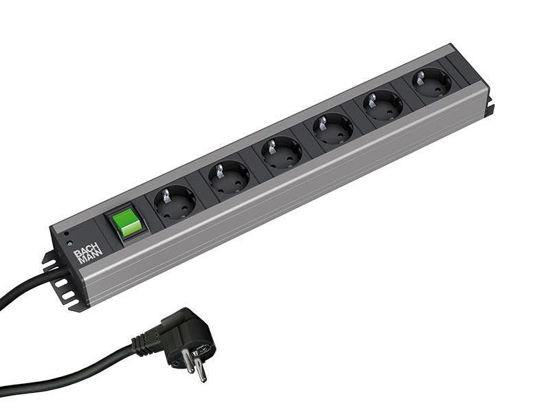 Bachmann 300.003. Longitud de cable: 2 m, Colocación soportada: Interior, Factor de forma de enchufe eléctrico: Angular. Cantidad de salidas AC: 6 salidas AC. Voltaje de entrada AC: 230 V, Máxima corriente: 16 A. Ancho: 445 mm, Profundidad: 45 mm, Altura: 74 mm