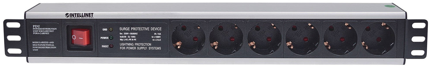 Intellinet 713962. Capacidad del rack: 1.5U, Tipo: Regleta eléctrica, Material de la carcasa: Aluminio. Cantidad de salidas AC: 6 salidas AC. Longitud de cable: 3 m. Máxima corriente: 16 A. Ancho: 44,4 mm, Profundidad: 482,6 mm, Altura: 62 mm