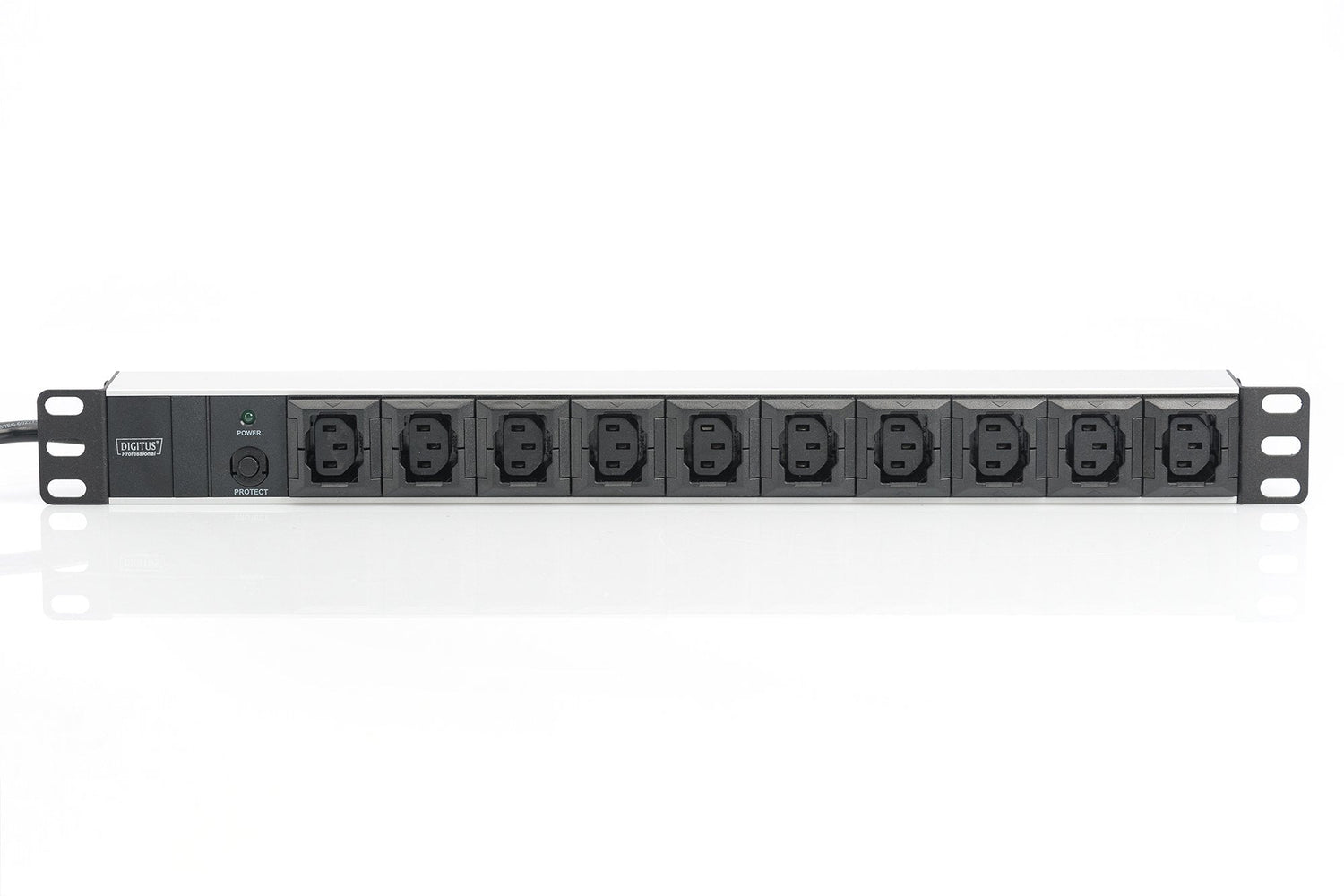 - Salida: tomas para aparatos 10 x IEC60320 C13, máx. 10 A por salida, protección contra extracción integrada para cada salida