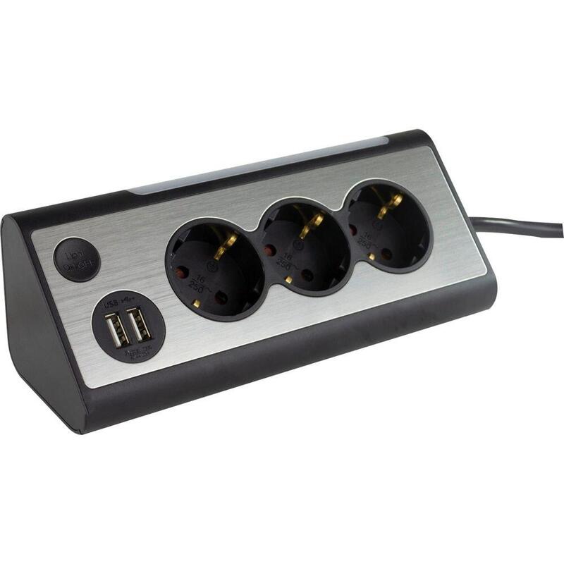 Toma De Luz Rev Toma De Corriente Múltiple De 3 Tomas + 2x Usb