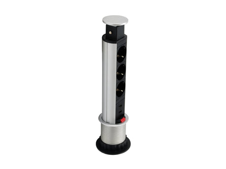 Regleta Equip Pop-Up Para Mesa 3 Tomas + 2 Puertos Usb Con Interruptor Aluminio Diametro 60mm