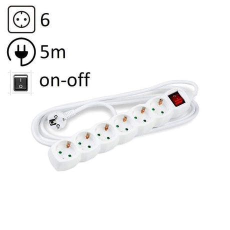 Technik Regleta De Corriente 6 Enchufes 5,0m 16a Blanco+Interruptor