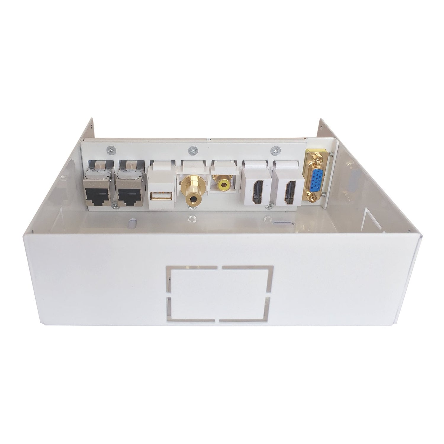 Caja de conexión multimedia, ideal para instalaciones en oficinas, salas de reunión y aulas etc.