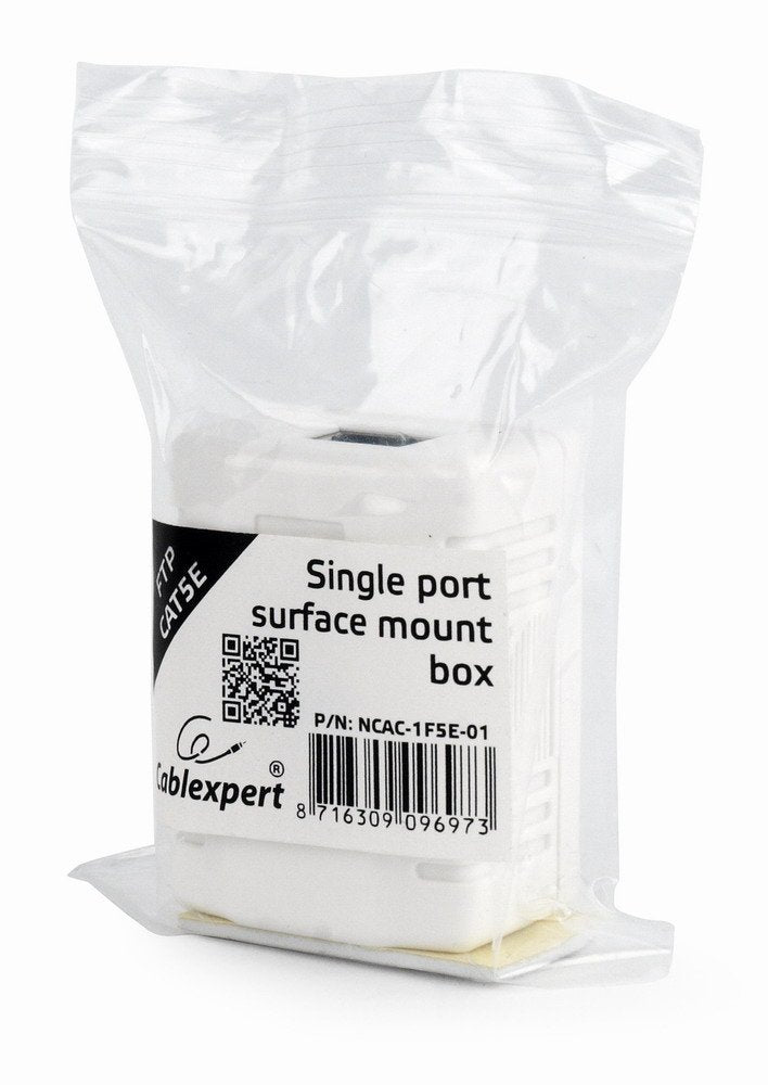 Gembird NCAC-1F5E-01. Tipos de cable soportados: Cat5e. Color del producto: Blanco. Ancho: 40 mm, Profundidad: 53 mm, Altura: 30 mm. Ancho del paquete: 80 mm, Profundidad del paquete: 100 mm, Altura del paquete: 30 mm