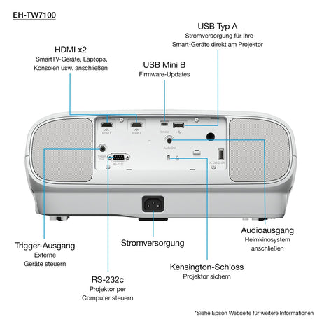 Proyector Epson Eh-Tw7100,4k, Uhd, 16: 9, 3000ansi, 100.000: 1, Usb 2.0, Hdmi, Bluetooth