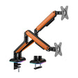 AISENS Soporte de Mesa RGB Gaming contrapeso giratorio e inclinable para Monitor/TV 9Kg (3 Pivotes, 2 Brazos) de 17-32, Negro-Naranja. Montaje: Abrazadera/Atornillado, Capacidad máxima de peso: 18 kg, Tamaño mínimo de pantalla: 43,2 cm (17"), Tamaño máximo de pantalla: 81,3 cm (32"), Compatibilidad con interfaz de montaje (min): 75 x 75 mm, Compatibilidad con interfaz de montaje (max): 100 x 100 mm. Ajustes de altura, Ángulo de inclinación: -55 - 55°. Color del producto: Negro, Naranja