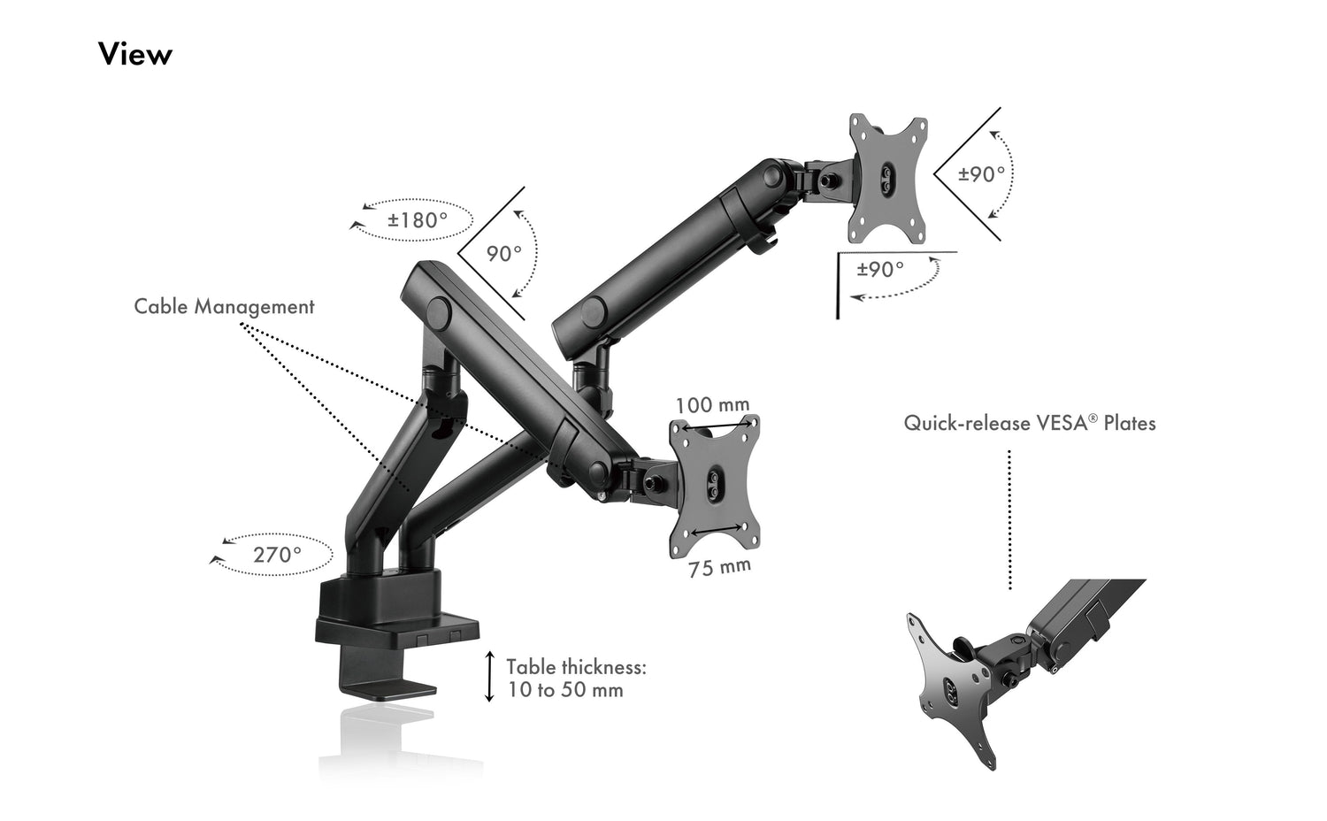ICY BOX IB-MS314-T. Montaje: Abrazadera, Capacidad máxima de peso: 16 kg, Tamaño máximo de pantalla: 81,3 cm (32"), Compatibilidad con interfaz de montaje (min): 75 x 75 mm, Compatibilidad con interfaz de montaje (max): 100 x 100 mm. Ángulo de giro (alcance): -90 - 90°, Ángulo de inclinación: -45 - 90°. Color del producto: Negro