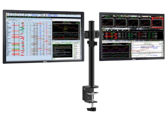 Soporte con dos brazos articulados, de montaje en mesa, para doble monitor de 10 a 27” (máx. 10Kg).