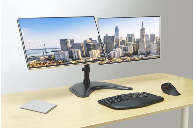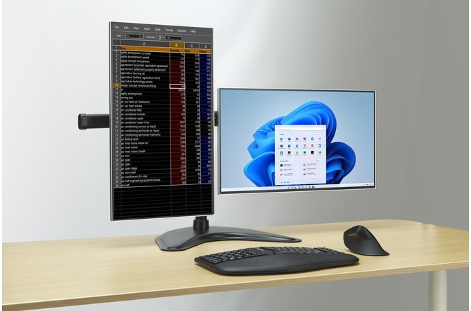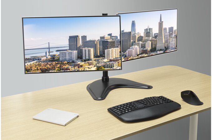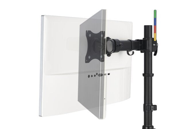 Kensington SmartFit Ergo. Montaje: Independiente, Capacidad máxima de peso: 20 kg, Tamaño máximo de pantalla: 68,6 cm (27"), Compatibilidad con interfaz de montaje (min): 75 x 75 mm, Compatibilidad con interfaz de montaje (max): 100 x 100 mm. Ajustes de altura, Ángulo de giro (alcance): -15 - 15°, Ángulo de inclinación: -45 - 45°. Color del producto: Negro