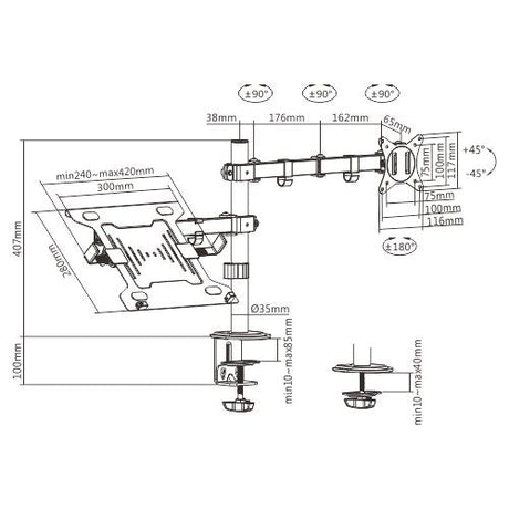 Gembird Ma-Da-03 Adjustable Desk Mount With Monitor Arm And Portátil Tray