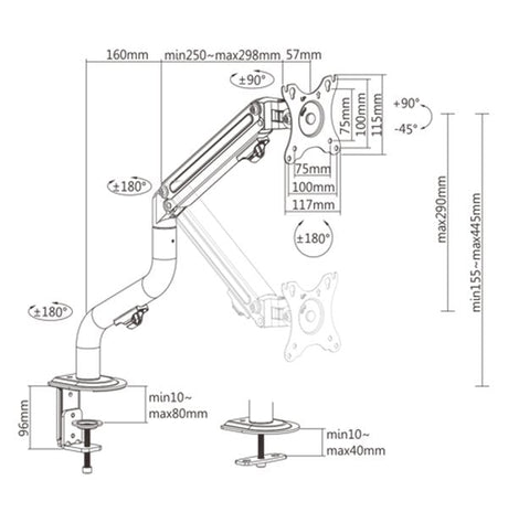 Gembird Desk Mounted Adjustable Monitor Arm Space Grey
