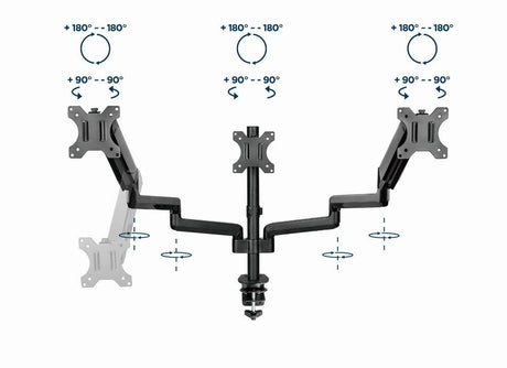 Gembird Desk Mounted Adjustable Mounting Arm For 3 Monitors - Full-Motion